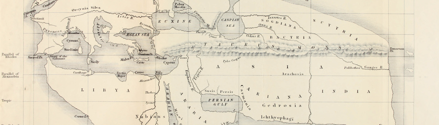 Eratóstenes situaba el mundo habitado en una franja alargada de este a oeste. En la imagen, reconstrucción del mapa de Eratóstenes (s. XIX).