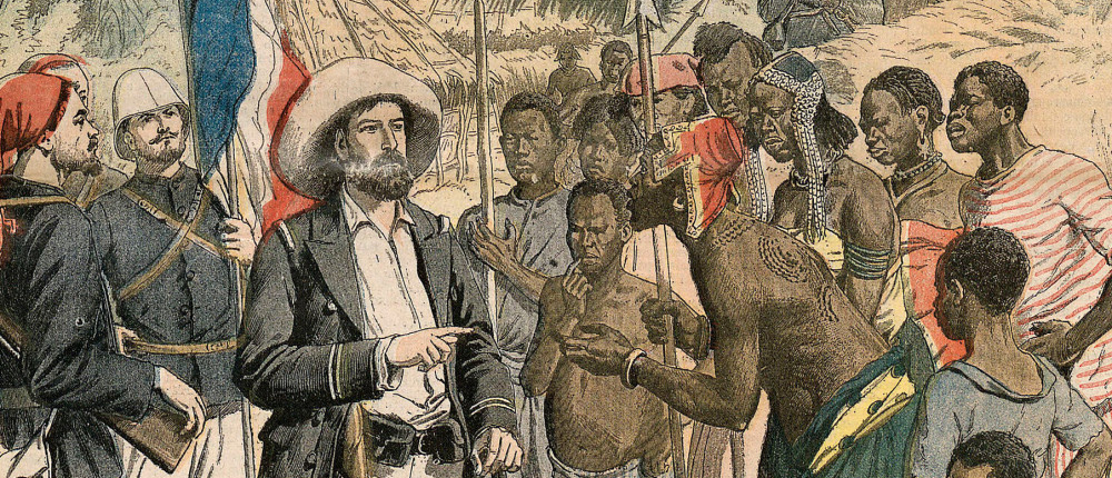 Los primeros habitantes de Franceville han sido esclavos liberados. La cuestión de la esclavitud es un tema complejo. Uno se encuentra a menudo con dificultades casi insuperables… Mantener el honor de la bandera que arranca su presa a los negreros no es cosa fácil cuando no se quiere emplear la violencia. En 1875, en mi primer viaje, no arbolé la bandera francesa más allá de los artilleros franceses…”