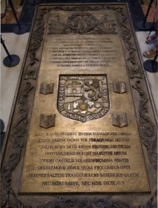 Arriba. Sepultura de Hernando Colón en la Catedral de Sevilla que reproduce cuatro libros