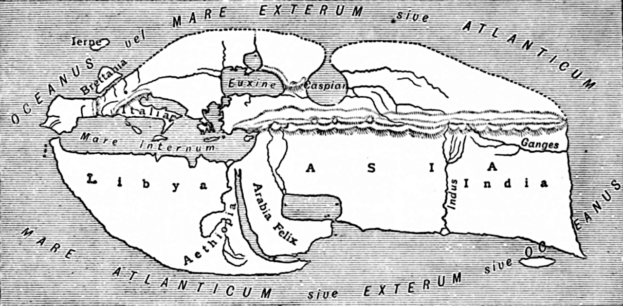 En el siglo V. a. C. el griego Heródoto ya había realizado extensos viajes por el mundo de su época y empezaba a plasmar sus experiencias en sus Historias. Aunque su enfoque principal eran las guerras médicas entre Grecia y Persia, dedicó una parte considerable de su obra a describir los lugares, pueblos y costumbres de las diversas regiones que visitó o de las que tuvo noticia. Entre ellas destacaban Egipto, Escitia, Grecia, Libia, Arabia, la India y el resto de los territorios al este de Persia.