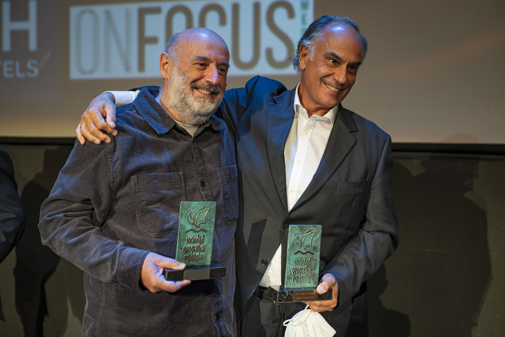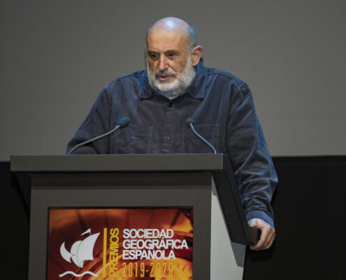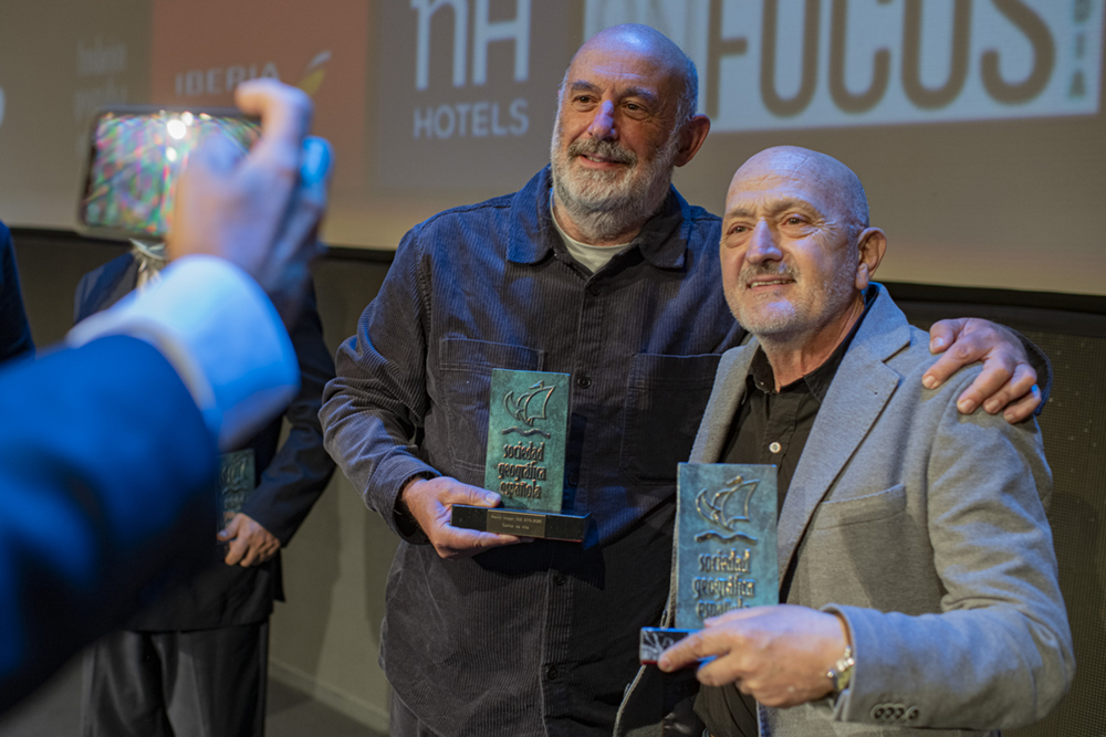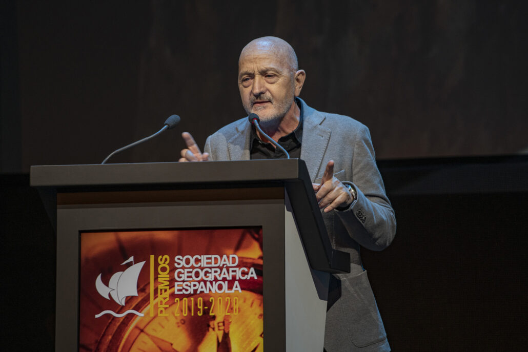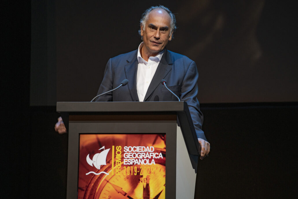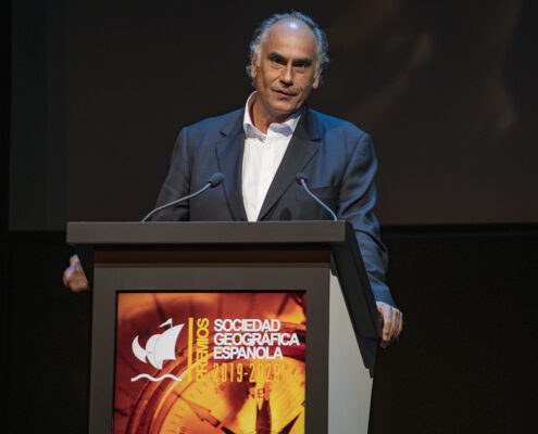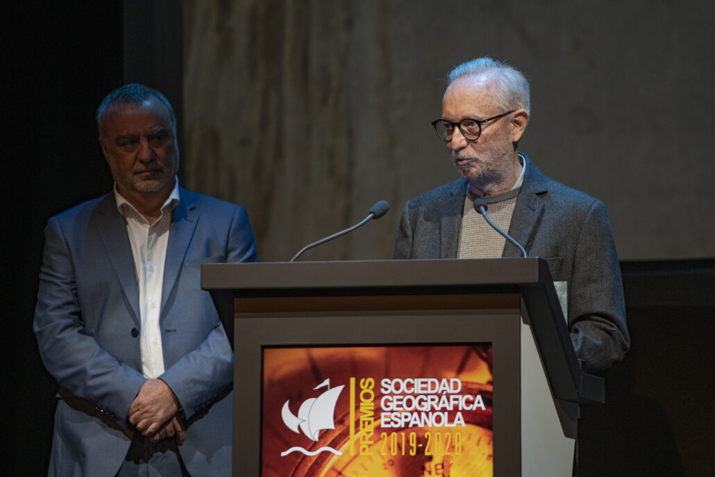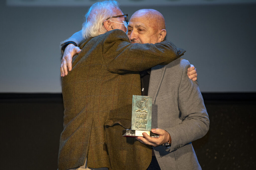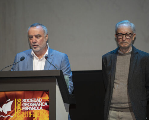 - El arqueólogo Walter Alva, la veterinaria Rebeca Atencia, el periodista, escritor y alpinista Sebastián Álvaro, el Catedrático de Física de la Tierra José Antonio Sobrino, los viajeros “a cuatro ruedas” Vicente Plédel y Marián Ocaña, el cineasta Joaquín Gutiérrez Acha, el técnico de sonido de la naturaleza Carlos de Hita y el Proyecto Carabela de tecnología al servicio de los archivos históricos compartieron este año los Premios que la Sociedad Geográfica Española concede desde hace más de dos décadas a las mejores iniciativas y proyectos en el campo de la exploración, los viajes, a aventura y la investigación científica.