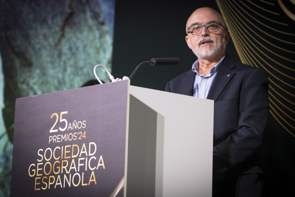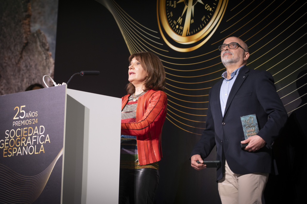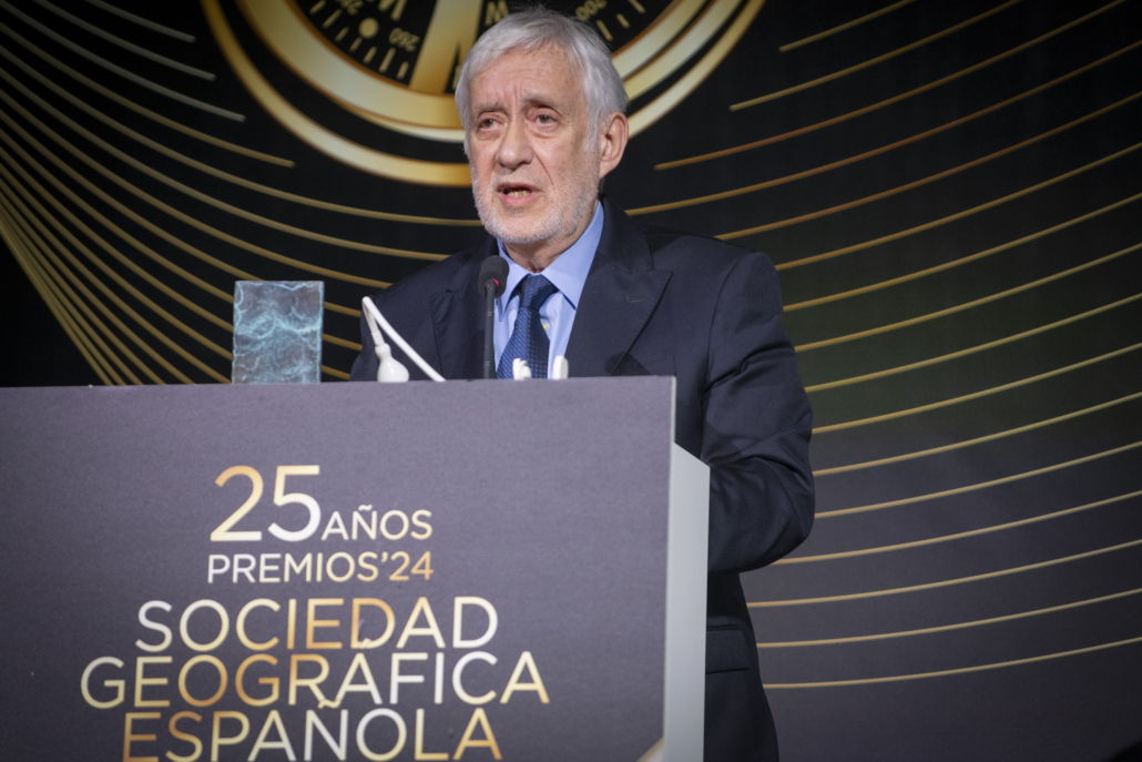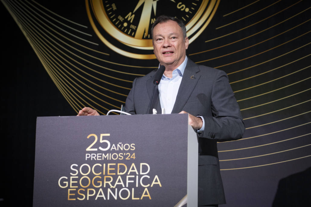 Madrid, 21 de marzo. Anoche se entregaron en Madrid los XXV Premios de la Sociedad Geográfica Española, los Premios SGE 2024, en una ceremonia que abrió el presidente de la Sociedad, Juan Ignacio Entrecanales, quien en sus palabras de bienvenida resaltó que este acto consigue, al menos por un día, reunir gentes que posiblemente nunca hubieran pensado que tenían nada en común, porque “los premios de la Sociedad Geográfica Española son para todos aquellos que tienen vocación de conocer y cambiar el planeta en el que vivimos”.