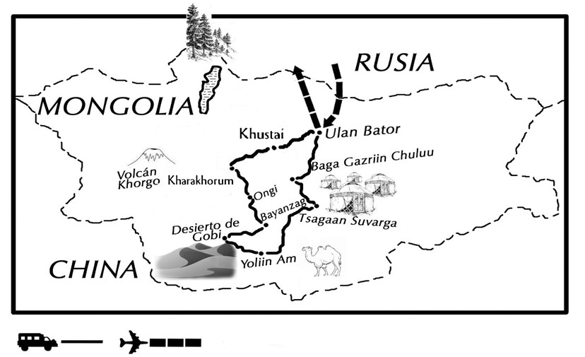 Una ruta en furgonetas 4×4 recorriendo el Centro y Sur de Mongolia. Kilómetros de paisajes infinitos y naturaleza virgen. Después de conocer un poco ULAN BATOR, la capital, comenzamos la ruta hacia el Sur.