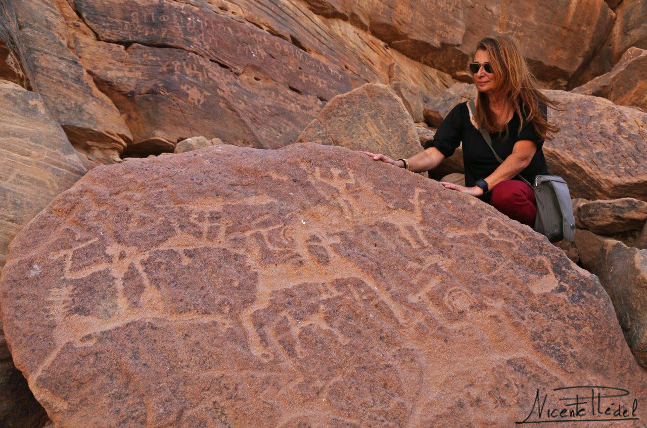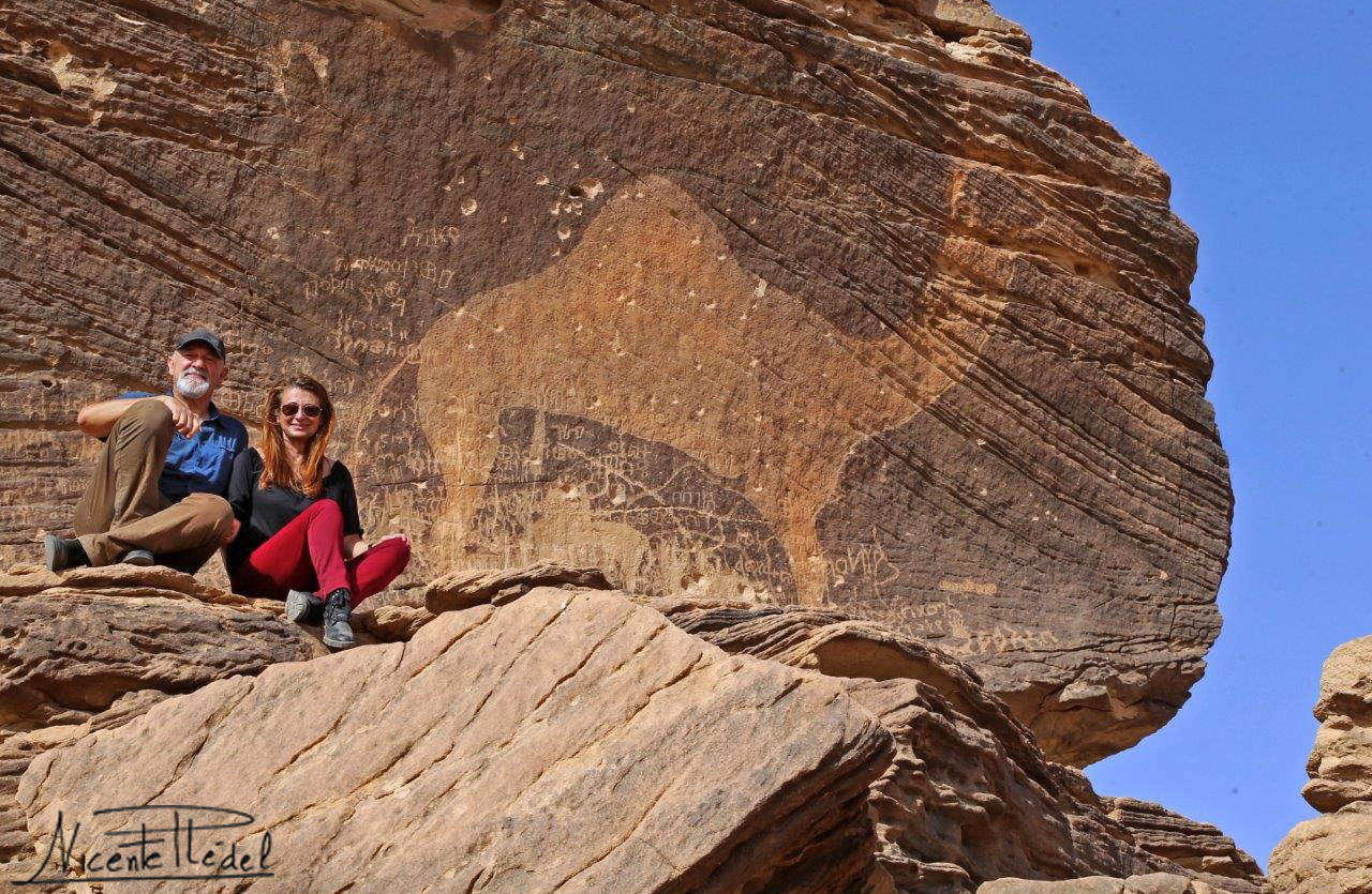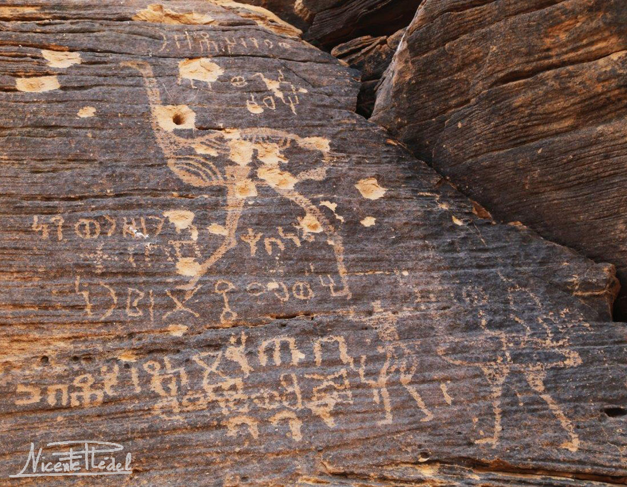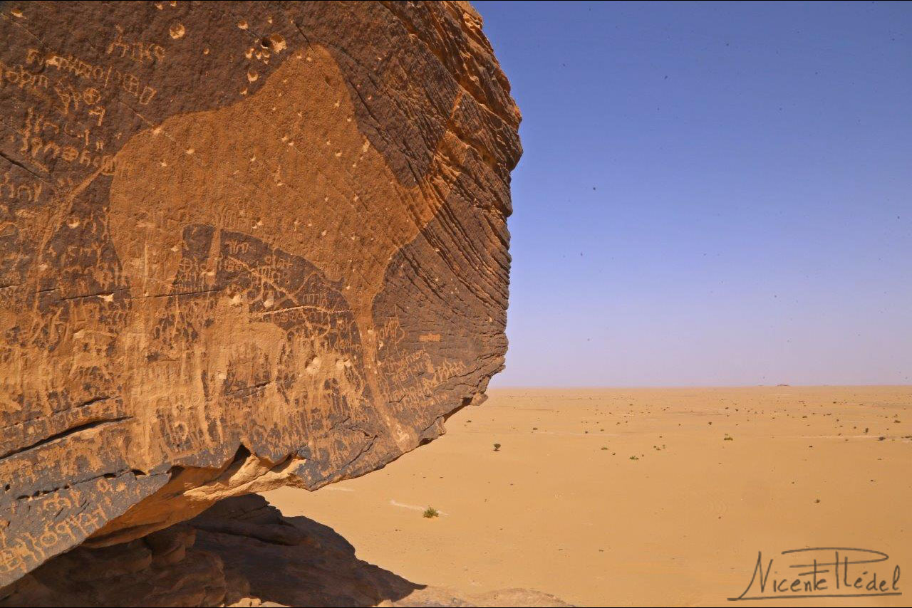 Este legado de arte rupestre muestran representaciones humanas, de animales, de caza, estilos de vida, miles de inscripciones escritas en arcaicos y lejanos idiomas hablados a lo largo de muchos siglos (arameo-nabateo; thamúdico preislámico, griego, árabe clásico…). Una extraordinaria biblioteca de innumerables y compactas páginas de piedra.